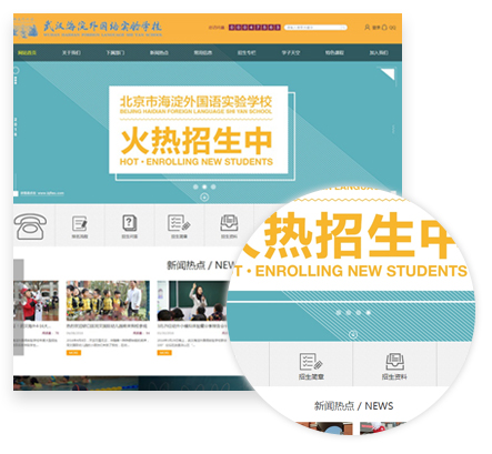 首頁首屏采用滾動大圖的形式,展示校園環(huán)境、課堂教學等圖片內(nèi)容,不僅使網(wǎng)站界面整體上清新高雅、大氣美觀,具有強烈的動態(tài)美感,而且大圖作為網(wǎng)站的一種有效的宣傳方式,作為網(wǎng)站的直接視覺元素,可以有效地吸引用戶的注意力,突出學?,F(xiàn)代化、國際化學校辦學特色。