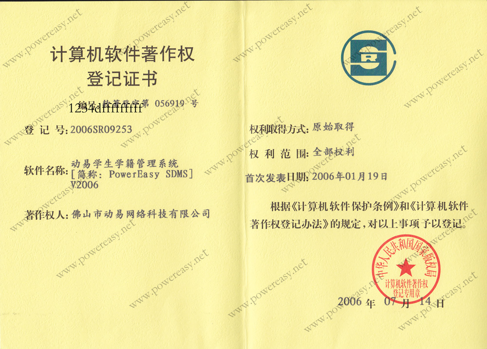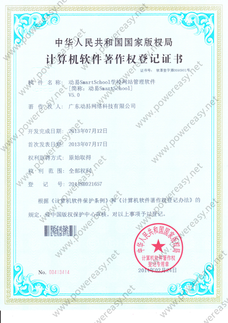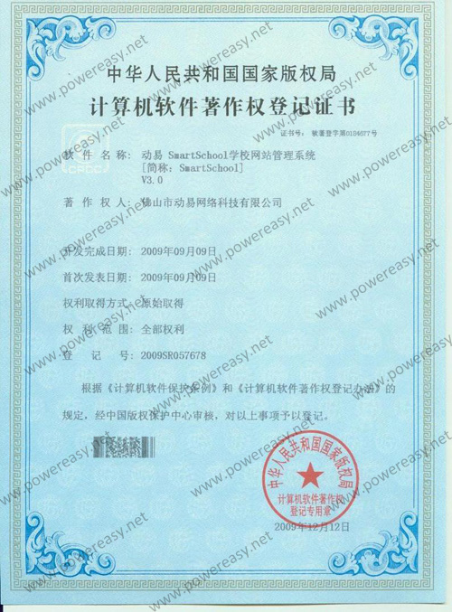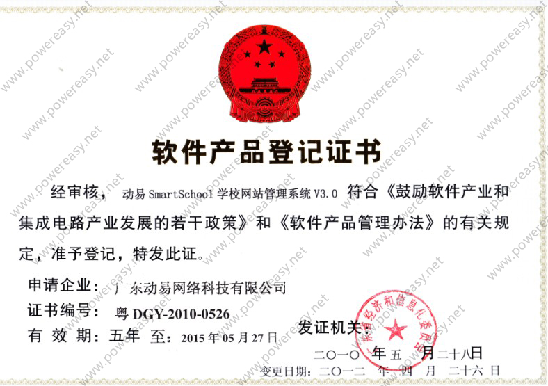 • 軟件產(chǎn)品登記證書 動易SmartSchool學(xué)校網(wǎng)站管理系統(tǒng)V3.0