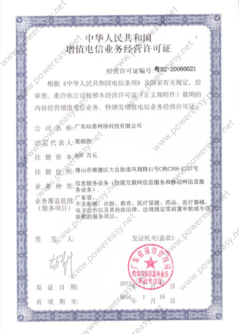 • 增值電信業(yè)務(wù)經(jīng)營許可證
