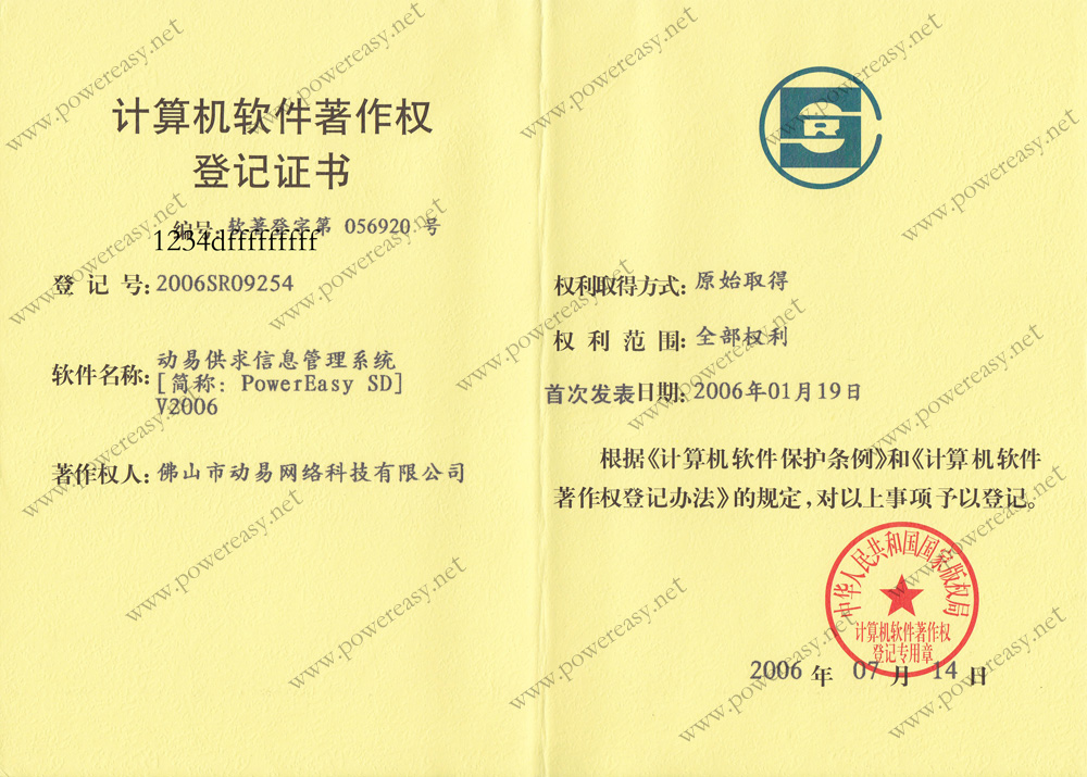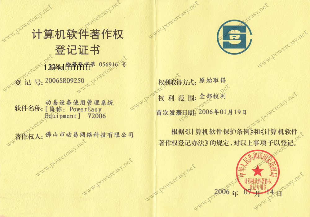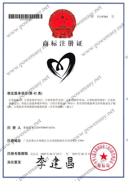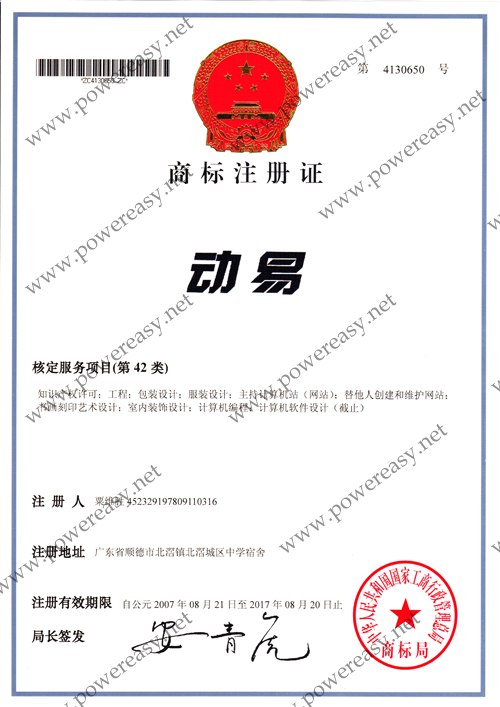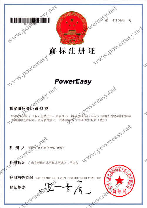 • “PowerEasy”商標(biāo)注冊證