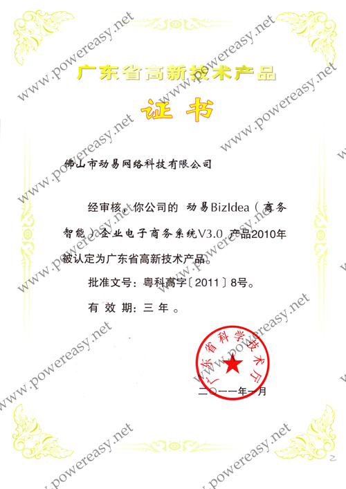 • 2010年廣東省高新技術(shù)產(chǎn)品 (BizIdea)證書