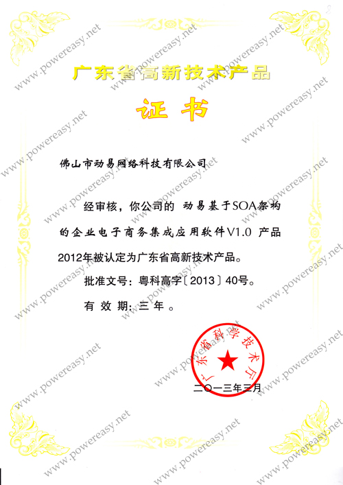 • 2012廣東省高新技術(shù)產(chǎn)品-動易基于SOA架構(gòu)的企業(yè)電子商務(wù)集成應(yīng)用軟件V1.0