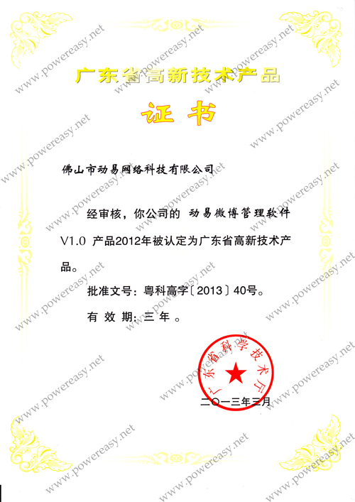 • 2012廣東省高新技術(shù)產(chǎn)品-動易微博管理軟件V1.0