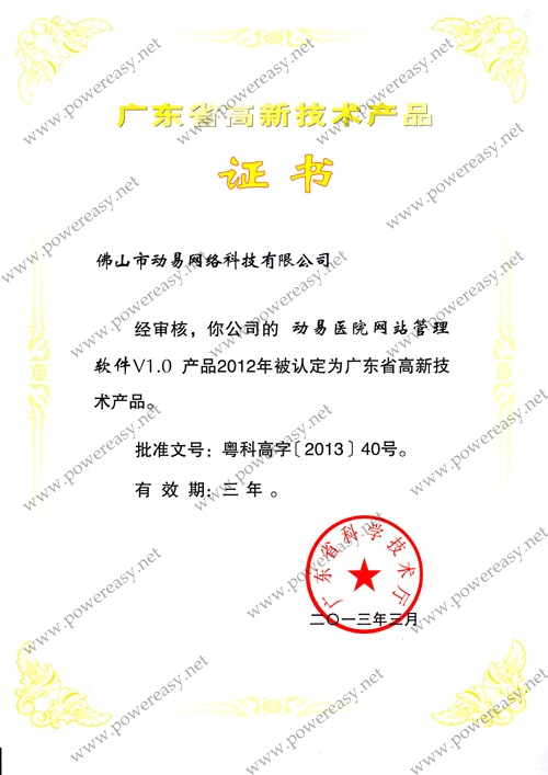 • 2012廣東省高新技術(shù)產(chǎn)品-動易醫(yī)院網(wǎng)站管理軟件V1.0