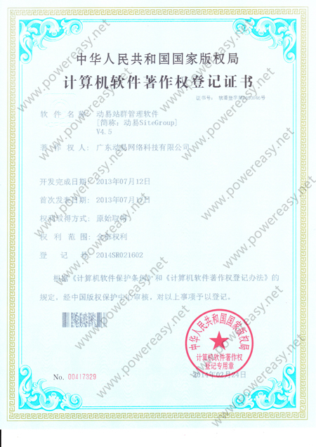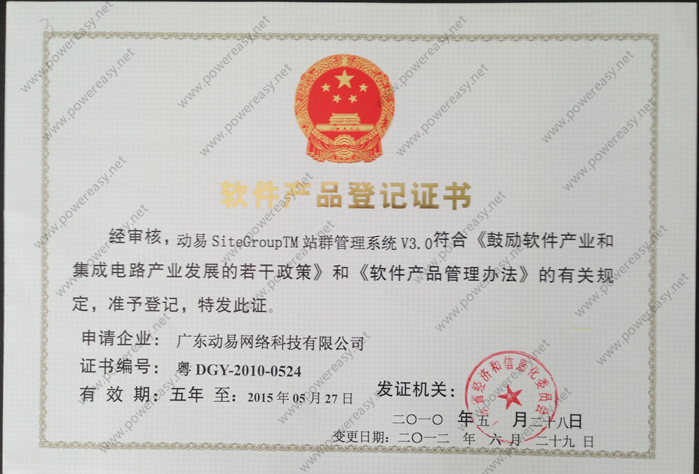 軟件產(chǎn)品登記證書 動易SiteGroup站群管理系統(tǒng)V3.0