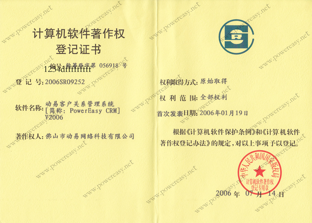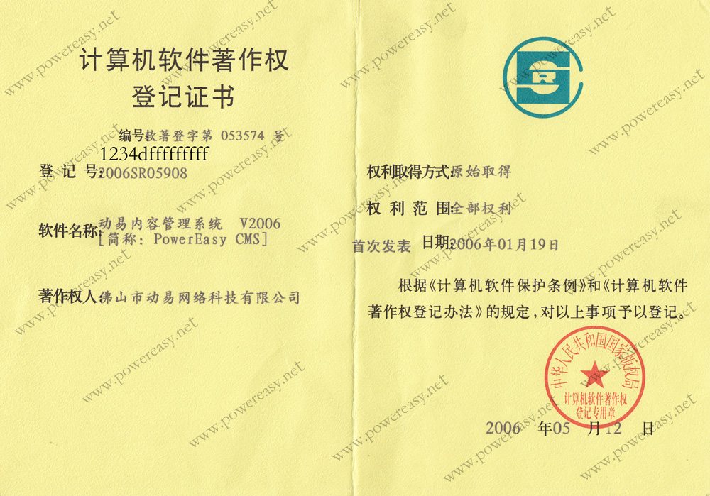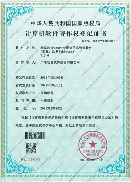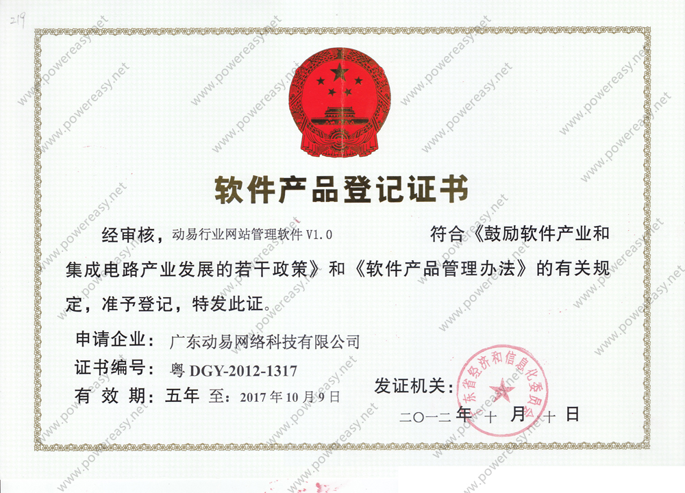 軟件產(chǎn)品登記證書 動易網(wǎng)站管理系統(tǒng)V2005