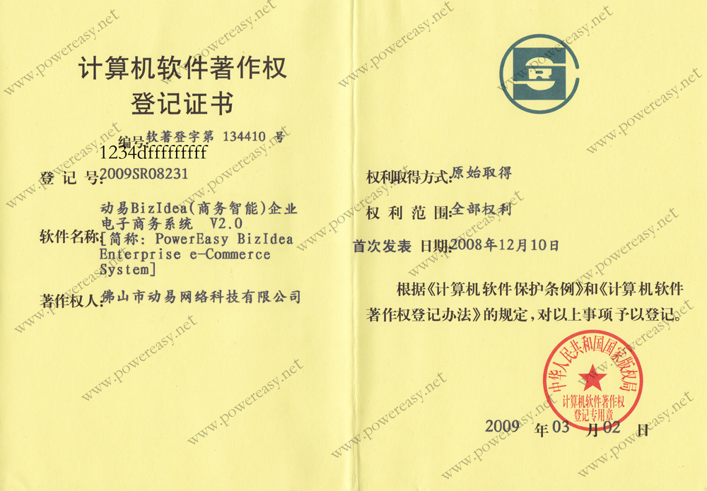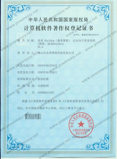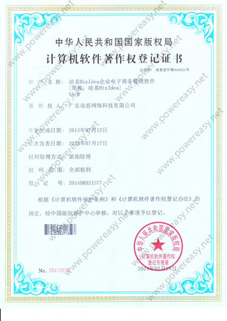 • 軟件產(chǎn)品登記證書 動易BizIdea企業(yè)電子商務(wù)系統(tǒng)V3.0