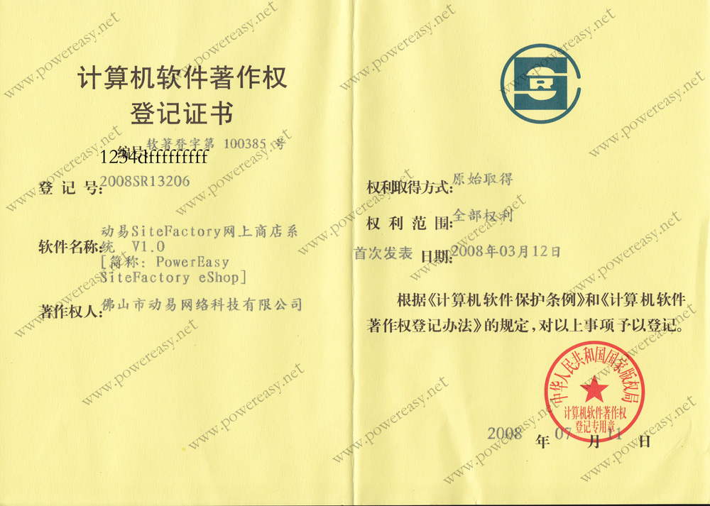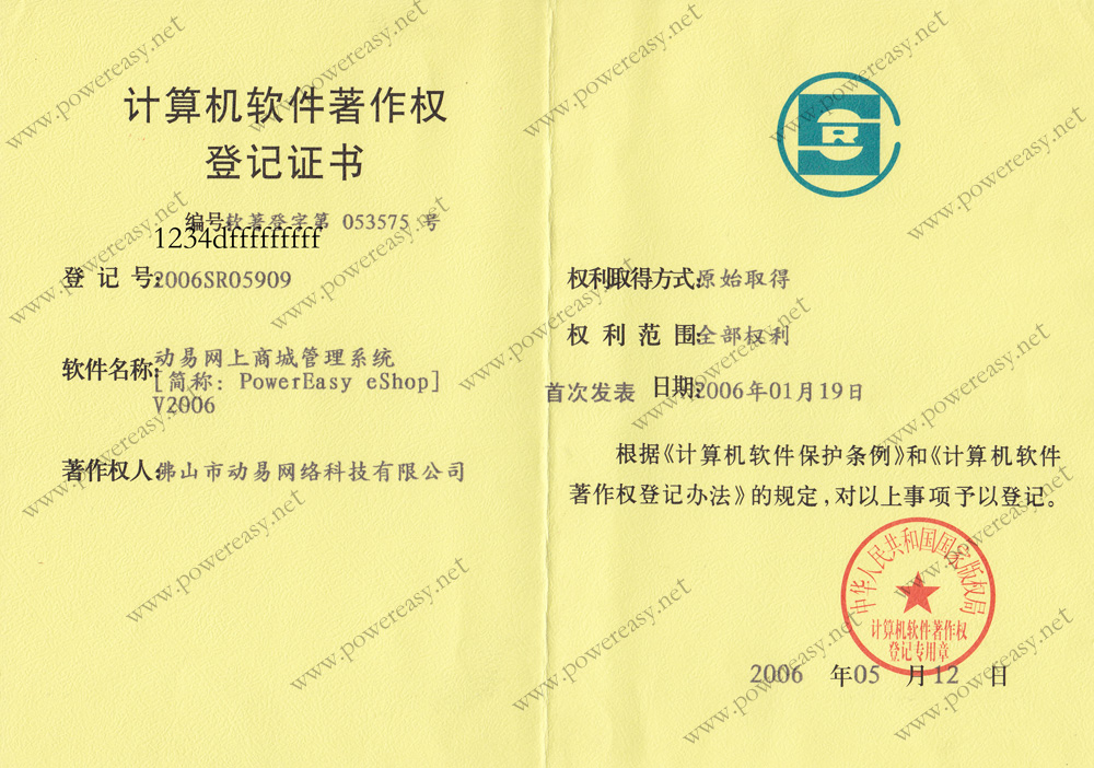 • 軟件產(chǎn)品登記證書 動易網(wǎng)上商城管理系統(tǒng)V2006
