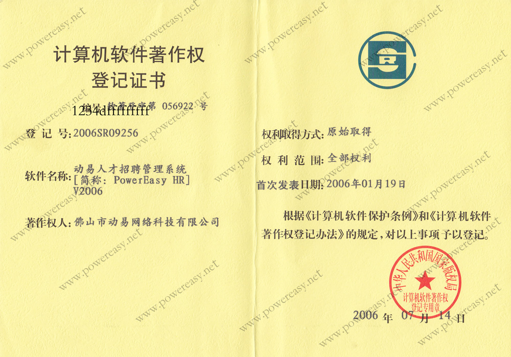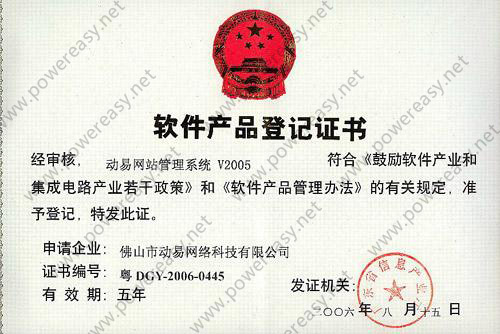 • 軟件產(chǎn)品登記證書 動易網(wǎng)站管理系統(tǒng)V2005