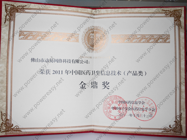• 2011年中國醫(yī)藥衛(wèi)生信息技術(shù)金鼎獎