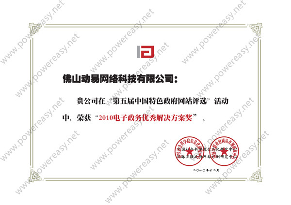 • 2010電子政務(wù)優(yōu)秀解決方案獎