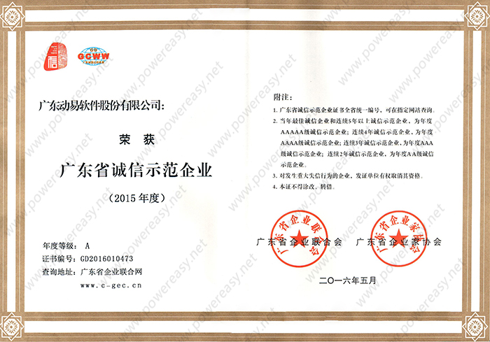 • 廣東省誠信示范企業(yè)