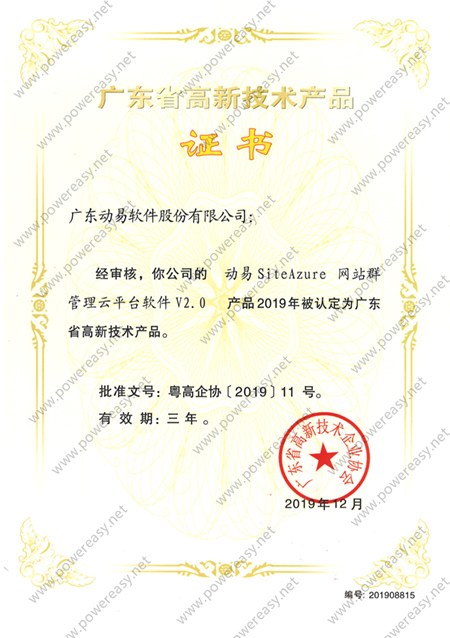• 2021高新技術(shù)產(chǎn)品證書—動易SiteAzure 網(wǎng)站群管理云平臺軟件V3.0