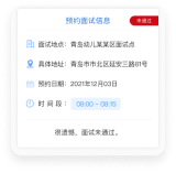 對于線下現(xiàn)場面試模式,在預(yù)約面試日期前三天、前一天、預(yù)約 面試當(dāng)天早上8點、預(yù)約面試時間段的前一個小時,分別提醒考生 要到來到現(xiàn)場進(jìn)行面試。