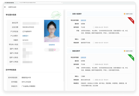 ——分成考生信息區(qū)、流程信息區(qū)和測評項目及結(jié)果區(qū)。信息全面,井井有條。