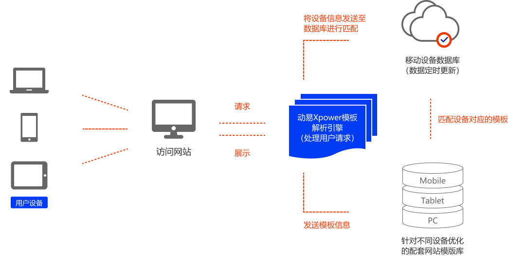 動(dòng)易獨(dú)創(chuàng)的多屏優(yōu)化技術(shù),可在保持同一域名、同一后臺(tái)、同一數(shù)據(jù)庫(kù)、同一套系統(tǒng)的基礎(chǔ)上,不同設(shè)備(如PC、手機(jī)、PAD)來(lái)訪問(wèn)網(wǎng)站時(shí),網(wǎng)站都會(huì)針對(duì)此類(lèi)設(shè)備顯示與之最相適應(yīng)和專(zhuān)為此類(lèi)設(shè)備的用戶使用習(xí)慣優(yōu)化的前端界面。