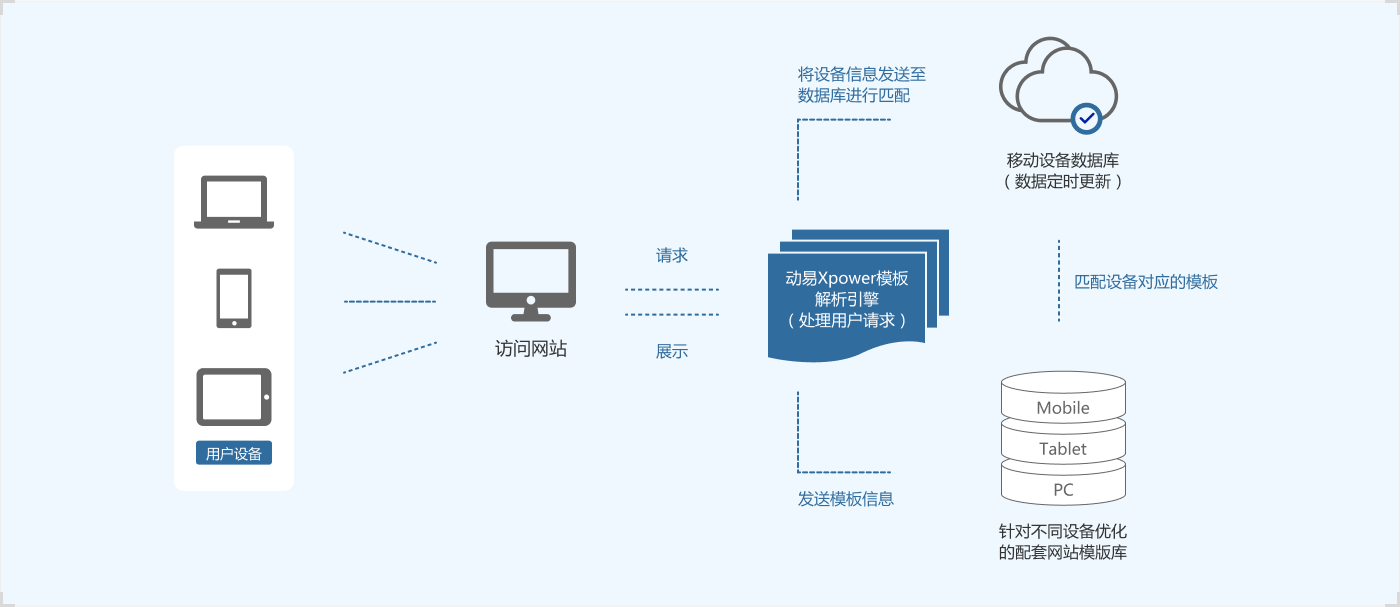 動(dòng)易獨(dú)創(chuàng)的多屏優(yōu)化技術(shù),可在保持同一域名、同一后臺(tái)、同一數(shù)據(jù)庫(kù)、同一套系統(tǒng)的基礎(chǔ)上,不同設(shè)備(如PC、手機(jī)、PAD)來(lái)訪問(wèn)網(wǎng)站時(shí),網(wǎng)站都會(huì)針對(duì)此類設(shè)備顯示與之最相適應(yīng)和專為此類設(shè)備的用戶使用習(xí)慣優(yōu)化的前端界面。