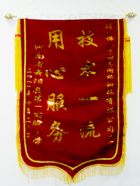 近日,河南省漯河市舞陽縣第一實(shí)驗(yàn)小學(xué)將一封感謝信以及兩面表揚(yáng)錦旗送到了動易公司,嶄新的錦旗上分別書著“用心服務(wù) 技術(shù)一流”和“鑄友誼 用動易 助力教育”,表達(dá)了對動易客服人員葉長海、技術(shù)支持工程師李寧寧在舞陽縣第一實(shí)驗(yàn)小學(xué)校園網(wǎng)建設(shè)過程中的優(yōu)質(zhì)服務(wù)的感謝之情,同時也對動易產(chǎn)品做出了很高的評價。