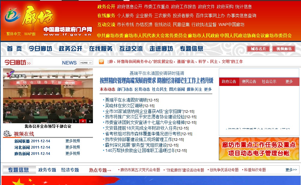 “中國廊坊”政府門戶網(wǎng)站使用動易政府網(wǎng)站建設(shè)解決方案進(jìn)行構(gòu)建,通過政務(wù)公開、在線服務(wù)、互動交流三方面積極開展工作,不斷深化政務(wù)公開,提升在線服務(wù)水平,按照及時(shí)準(zhǔn)確、公開透明、強(qiáng)化服務(wù)、便民利民的原則,多角度地為社會公眾提供快捷、細(xì)致、周到的規(guī)范性、權(quán)威性服務(wù),成為市政府面向社會的重要政務(wù)載體、信息平臺和宣傳服務(wù)窗口。