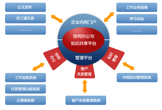 動(dòng)易協(xié)同辦公與知識(shí)共享平臺(tái)由協(xié)同辦公平臺(tái)、知識(shí)管理平臺(tái)兩大部份構(gòu)成,涵蓋企業(yè)工作流管理、任務(wù)分配管理、日清表管理、客戶(hù)關(guān)系管理、內(nèi)部知識(shí)門(mén)戶(hù)等應(yīng)用,將知識(shí)管理與應(yīng)用平臺(tái)、管理和協(xié)作平臺(tái)、溝通平臺(tái)集于一身,有效解決信息孤島、應(yīng)用孤島和資源孤島問(wèn)題,打破企業(yè)管理的各種屏障,讓企業(yè)的人、財(cái)、物、信息、流程等資源集中在統(tǒng)一的平臺(tái)上進(jìn)行管理,并實(shí)現(xiàn)它們之間的緊密鏈接和高效協(xié)作,從而為企業(yè)建立一個(gè)全面協(xié)同的數(shù)字化管理和運(yùn)營(yíng)環(huán)境。