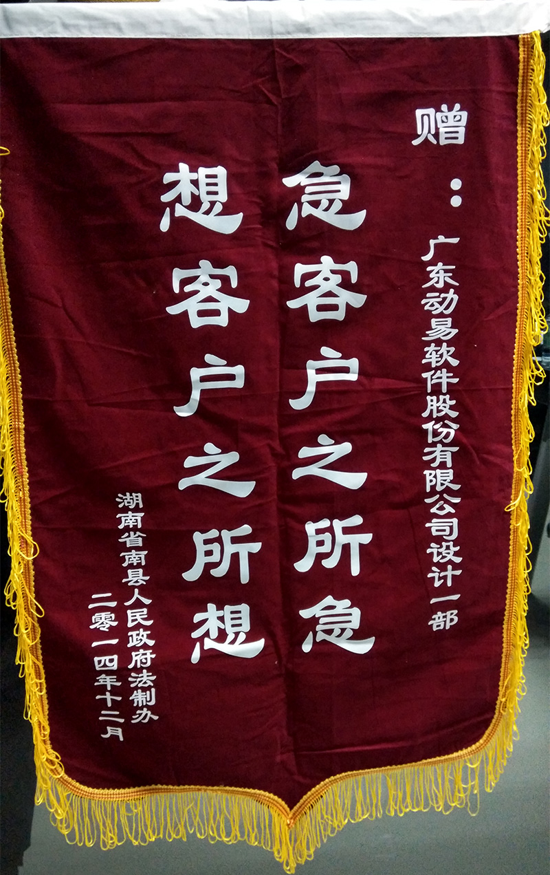 近日,動易公司設計一部收到了來自湖南省南縣人民政府代表謝意的錦旗,表達了對動易設計一部的設計師們在南縣人民政府網(wǎng)站群項目中優(yōu)質(zhì)服務的感謝之情。