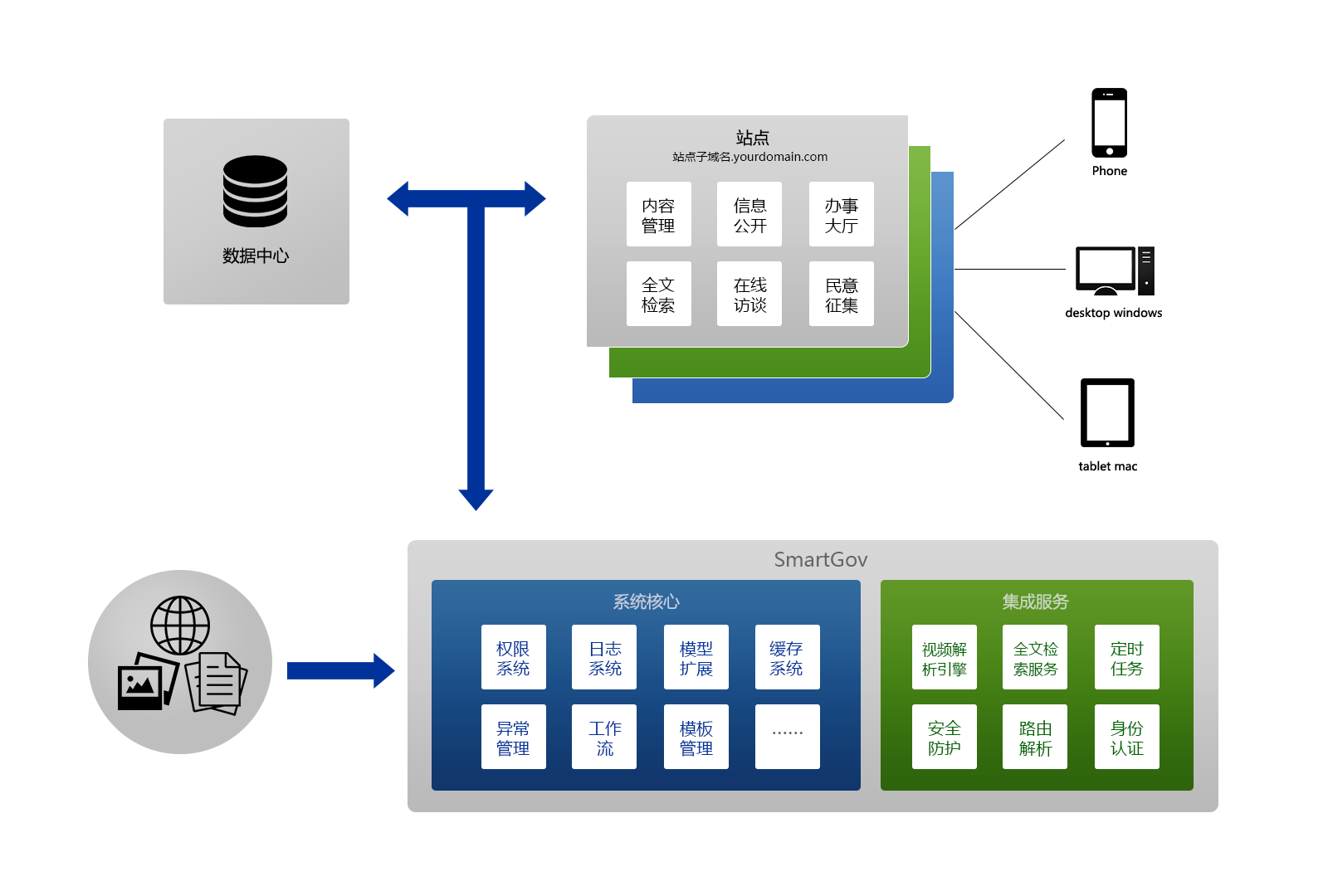 全新架構(gòu)的動(dòng)易SiteAzure響應(yīng)并完全符合國(guó)辦《國(guó)務(wù)院辦公廳關(guān)于加強(qiáng)政府網(wǎng)站信息內(nèi)容建設(shè)的意見》文件精神,對(duì)網(wǎng)站集群化與集約化進(jìn)行了完美的詮釋,是構(gòu)建新一代政府門戶網(wǎng)站集群的最佳解決方案。