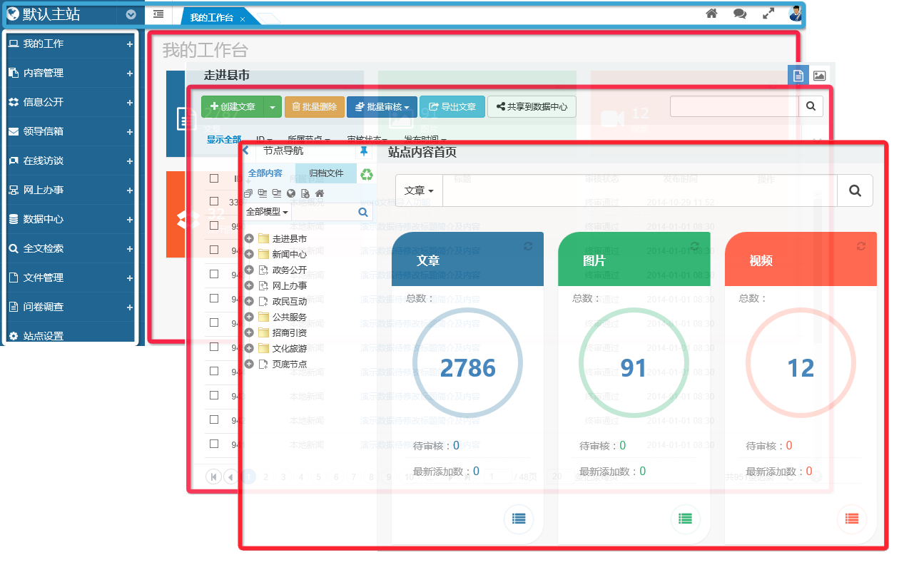 (進(jìn)入內(nèi)容管理,系統(tǒng)會自檢當(dāng)前欄目的內(nèi)容數(shù)據(jù),點(diǎn)擊數(shù)字即可進(jìn)入相關(guān)欄目)