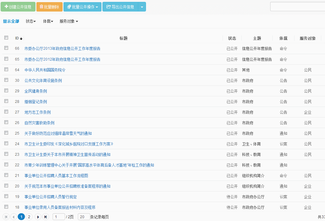 ● 列表頁可以按多種方式進(jìn)行刷選,包括可以按ID、所屬節(jié)點(diǎn)、審核狀態(tài)、發(fā)布時間(自定義選擇或按月選擇)。