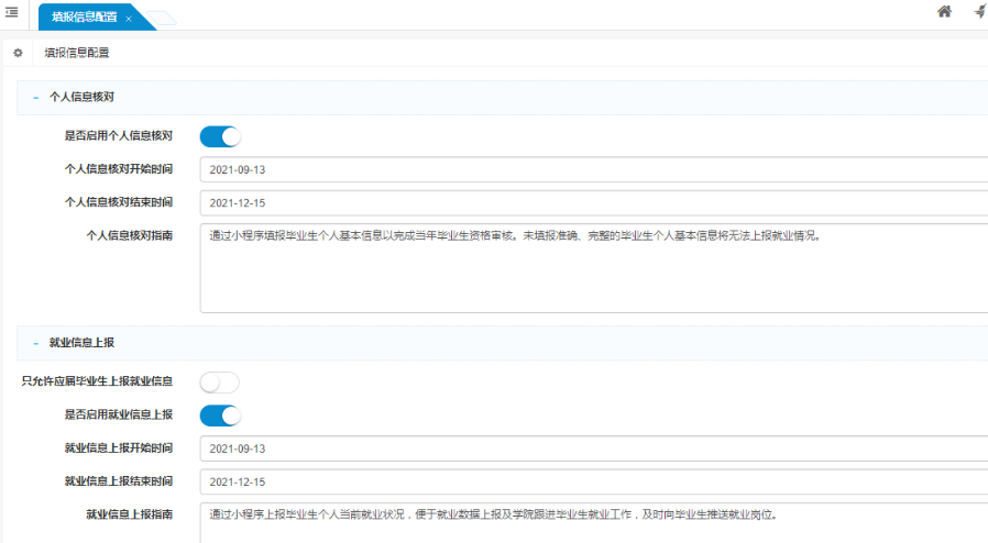 支持個(gè)人基本信息核對(duì)及信息上報(bào)的相關(guān)配置。