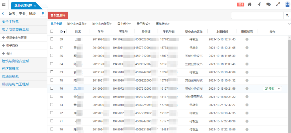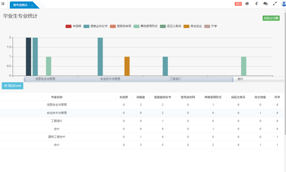 畢業(yè)生就業(yè)信息支持多維度統(tǒng)計(jì):