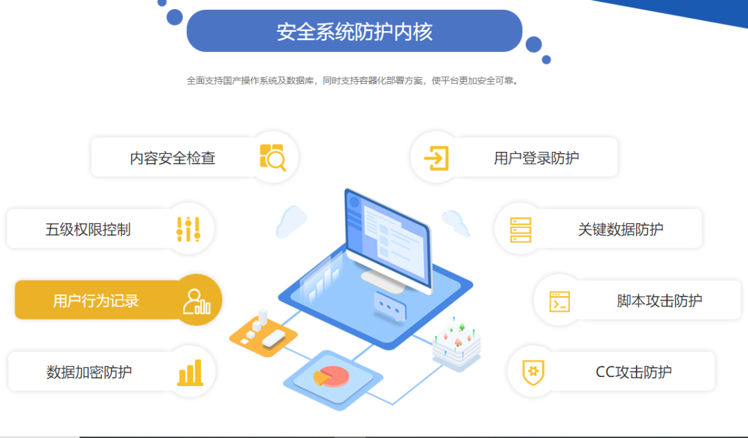 網(wǎng)站系統(tǒng)具備完善的安全體系防護(hù)系統(tǒng),已通過信息安全等級保護(hù)的要求,全面支持國產(chǎn)操作系統(tǒng)及數(shù)據(jù)庫。同時方案還集成強大的安全系統(tǒng)防護(hù)內(nèi)核,保障平臺穩(wěn)定可靠運行。