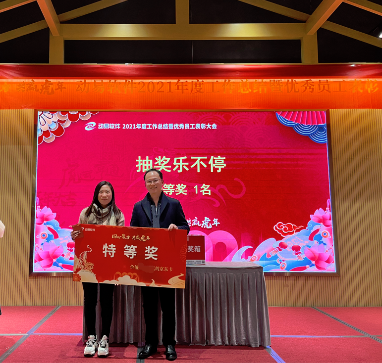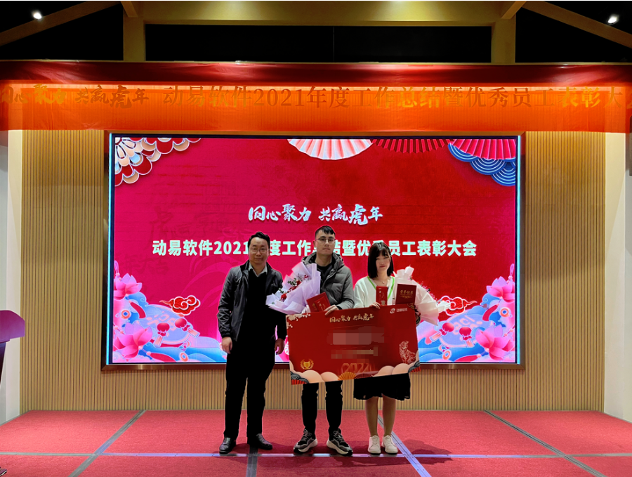 公司對(duì)2021年表現(xiàn)優(yōu)異的動(dòng)易人進(jìn)行了表彰鼓勵(lì), 主持人宣布了獲得各獎(jiǎng)項(xiàng)的名單,并由公司高層分別為獲獎(jiǎng)者頒發(fā)了表彰證書和獎(jiǎng)金。