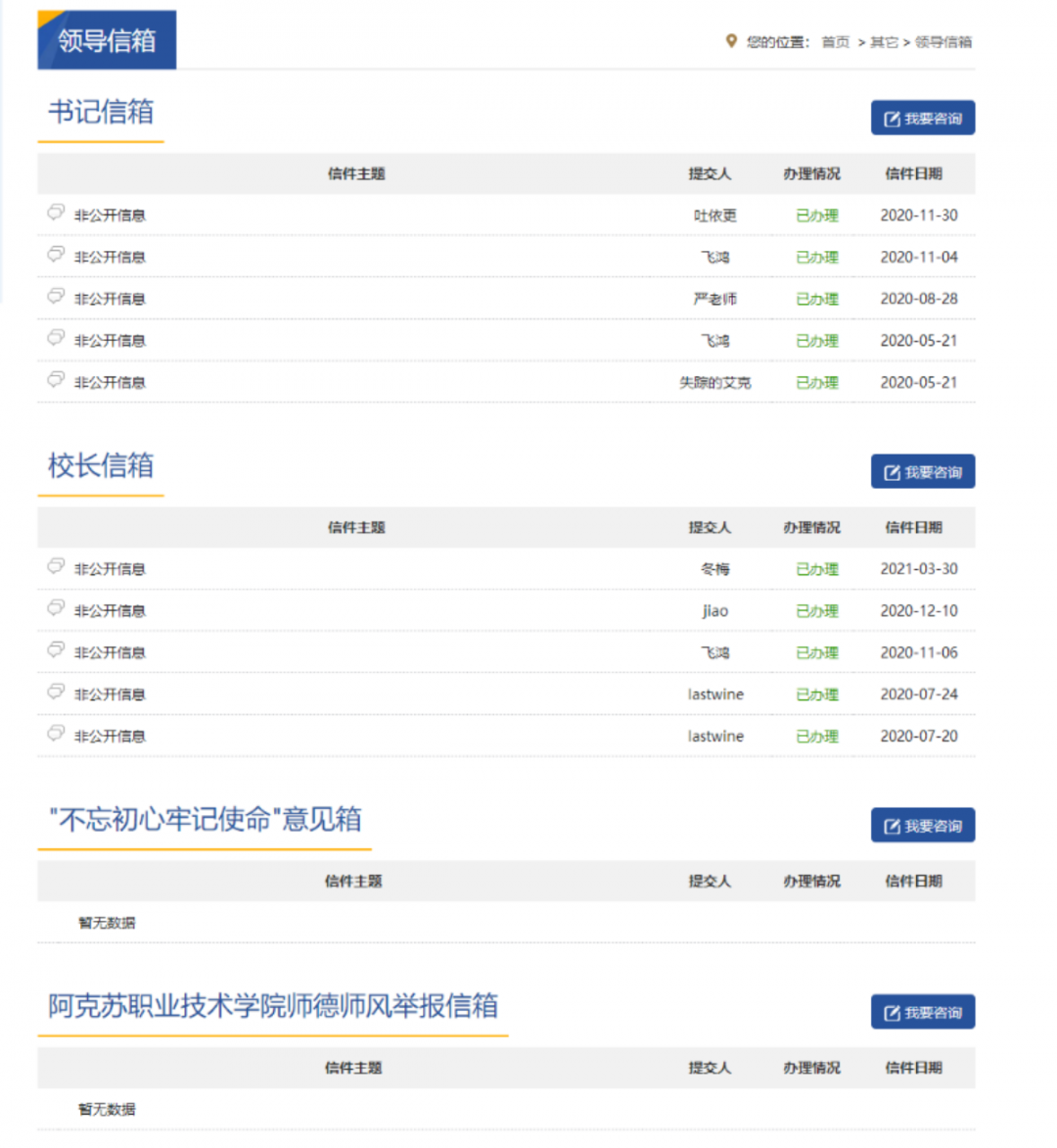 領(lǐng)導(dǎo)信箱進(jìn)一步增進(jìn)學(xué)校領(lǐng)導(dǎo)與師生員工、校友及社會(huì)各界人士的互動(dòng)交流,傾聽合理訴求,吸收合理化建議。