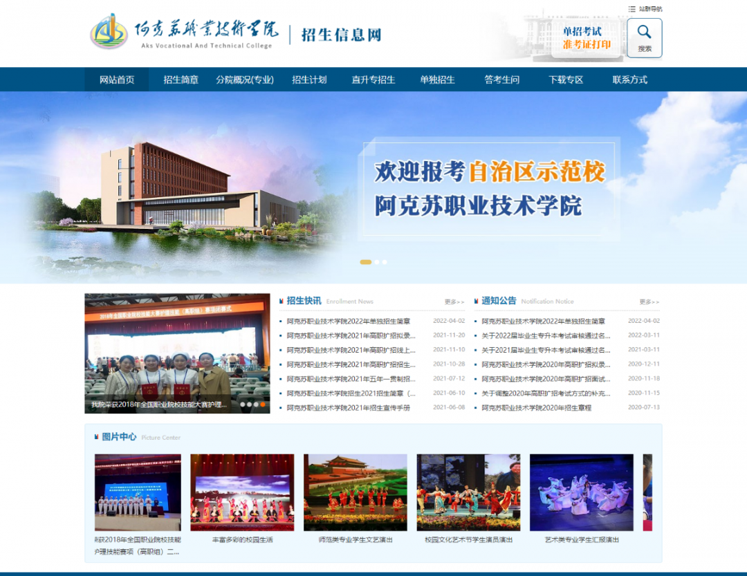 阿克蘇職業(yè)技術(shù)學(xué)院是2002年3月經(jīng)自治區(qū)人民政府批準(zhǔn)成立,隸屬阿克蘇地區(qū)行署管理的一所全日制普通綜合高等職業(yè)院校,是教育部等國家六部委指定的西北五省首批護(hù)理專業(yè)技能型緊缺人才示范性培養(yǎng)培訓(xùn)基地,是南疆唯一一所自治區(qū)示范性高等職業(yè)院校。