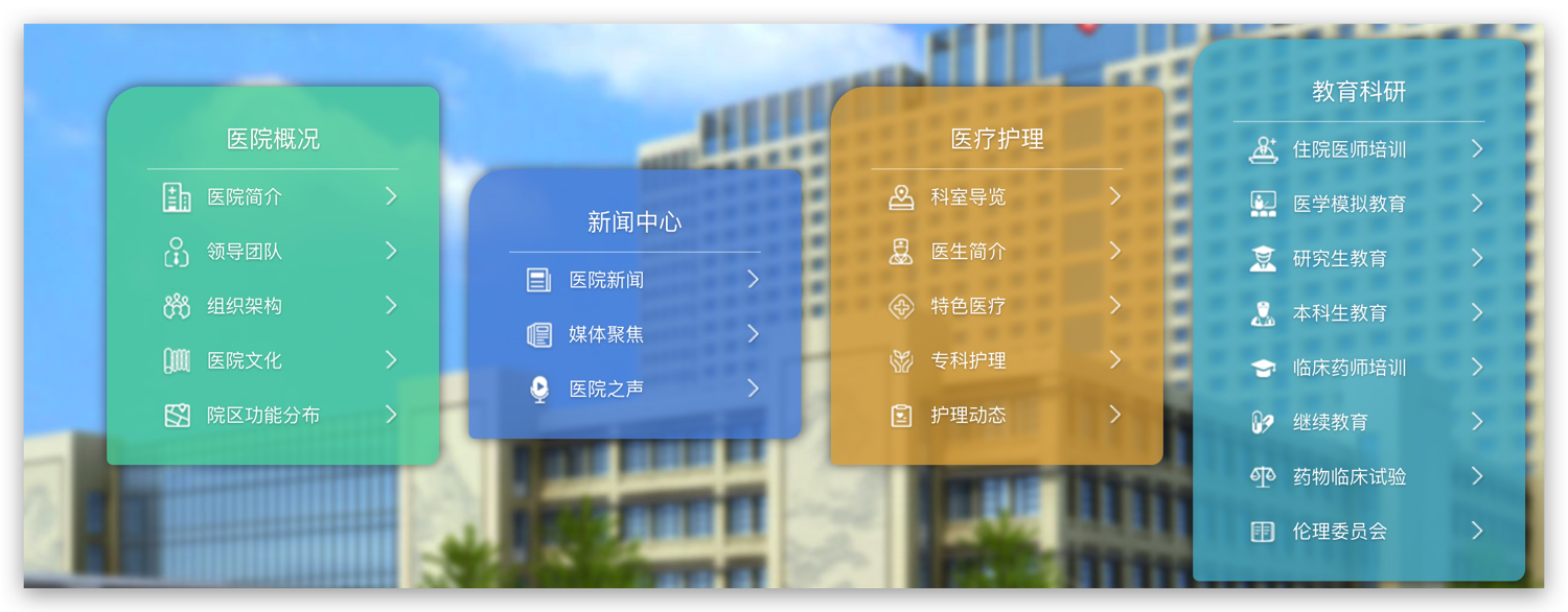 前臺頁面采用現(xiàn)代化、簡潔美觀的界面設(shè)計(jì),以用戶(尤其是患者)為核心視角,讓患者快速定位所需服務(wù)。
