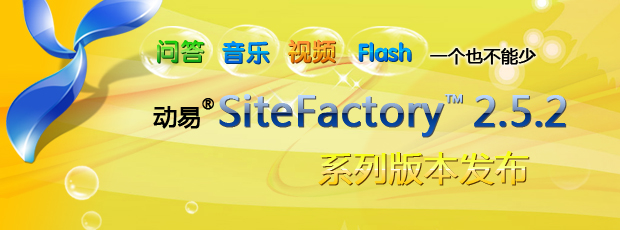 隨著 SiteFactory 2.5.2版新技術(shù)的成熟、三大新內(nèi)容模型和問答系統(tǒng)的完善,今天,動易 SiteFactory 標準版、專業(yè)版和企業(yè)版全面升級到 2.5.2 版本!同時,SiteFactory 專業(yè)版和企業(yè)版全面集成音樂、影視、FLASH內(nèi)容模型和在線問答系統(tǒng),其所需的新模板和標簽都已經(jīng)內(nèi)置在系統(tǒng)中。