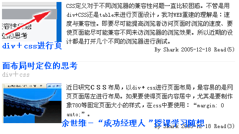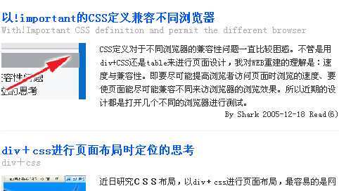 在Opera瀏覽器中瀏覽的效果中,標(biāo)題頂部缺少間距倒也說得過去,至少沒影響頁面效果;Mozilla Firefox中瀏覽的效果中標(biāo)題、副標(biāo)題都擠得亂套了,說明還有定義狐貍(Firefox)中要嚴(yán)格定義,耐心查查吧。