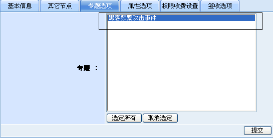建立好專題后,在相關(guān)節(jié)點(diǎn)中添加新聞時,若文章屬于黑客專題的范疇即可將這篇?dú)w屬于“黑客頻繁攻擊事件”專題(如下圖)。若之前已經(jīng)有相關(guān)的黑客文章需要?dú)w類到此專題,則可通過文章批量修改工具將文章統(tǒng)一歸屬于"黑客頻繁攻擊事件"專題就可以了。