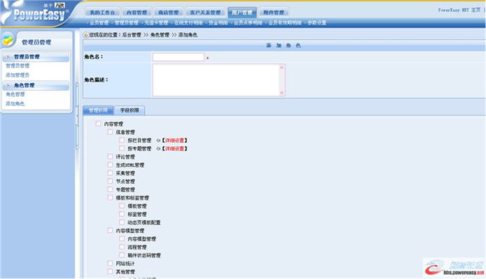 4.角色跟管理員是多對多的,修改一個角色的權(quán)限后,對應(yīng)的管理員的權(quán)限也會跟著改變,這就大大方便了每個管理員的權(quán)限分配、設(shè)置和修改,可以實現(xiàn)批量設(shè)置管理員角色和權(quán)限。而不像2006版那樣想要修改某個權(quán)限時候必須一個一個管理員或者管理員組去設(shè)置。