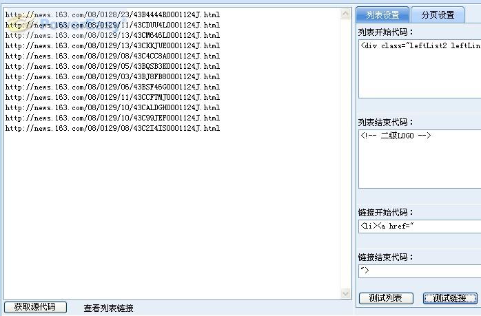 這里說的即時(shí)顯示指的是無刷新即看見采集的效果,所有的采集規(guī)則都可以通過AJAX效果進(jìn)行預(yù)覽。比如我們采集 的國內(nèi)新聞列表,當(dāng)我們?cè)O(shè)置好列表采集規(guī)則后,點(diǎn)擊“測試列表”和“測試鏈接”我們就可以直接在左邊預(yù)覽到采集后的效果(如下圖)。