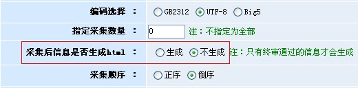 2、新增采集后自動(dòng)生成功能:這個(gè)功能可以為管理員節(jié)省大量的等待和操作時(shí)間。因?yàn)镾iteFactory? 的采集和生成多實(shí)現(xiàn)了多線程異步處理,管理員只需要開(kāi)啟采集后自動(dòng)生成功能,當(dāng)啟動(dòng)某項(xiàng)采集后剩下的工作就可以交給系統(tǒng)去完成了,并且管理員還可以在采集和生成時(shí)繼續(xù)的添加/編輯信息、管理會(huì)員、編輯模板,優(yōu)哉游哉!