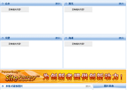 作為SiteFactory?CMS最重要的展示系統(tǒng)“模板引擎”在SiteFactory?1.1版本中進(jìn)行了眾多改進(jìn),如:經(jīng)常性標(biāo)簽解析異常,分頁錯亂等。今天將要介紹到的就是非常實用的“PE.Repeat解析的隔行循環(huán)輸出”功能。在介紹新功能之前,我們先來瀏覽幾個網(wǎng)站的截圖: