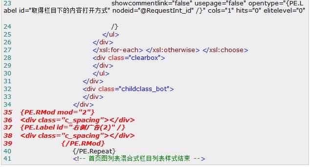 然后在第34和35行之間加入“PE.Repeat解析的隔行循環(huán)輸出”代碼,如下代碼加粗傾斜代碼: