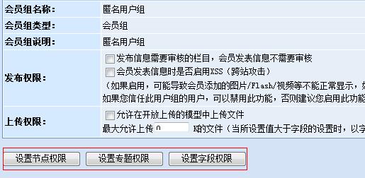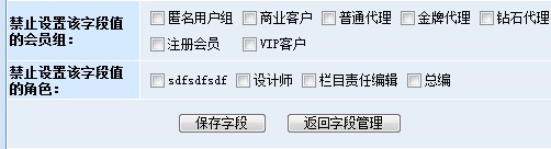 此途徑可以通過(guò)用戶(hù)管理中的“角色管理”和“會(huì)員組管理”來(lái)設(shè)置相應(yīng)的字段權(quán)限。先來(lái)看一下動(dòng)易SiteFactory? 新增加的“匿名投稿用戶(hù)組”的權(quán)限設(shè)置截圖: