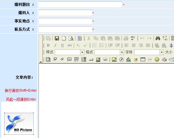 后臺(tái)管理員處理信息:爆料人、事發(fā)地點(diǎn)、聯(lián)系方式、是否處理、采納說(shuō)明、稿費(fèi)金額、爆料內(nèi)容。